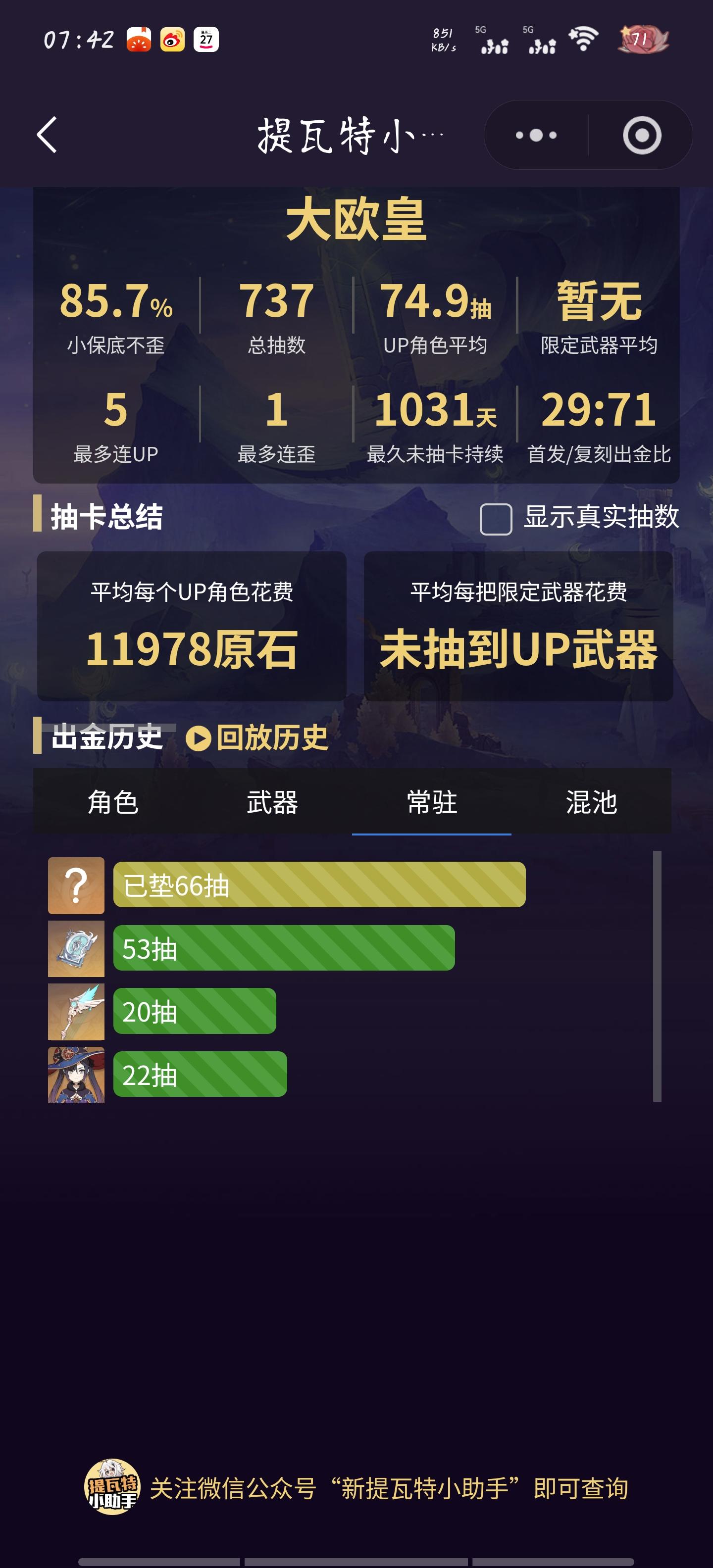 大佬们看看我现在的角色,是把机器人抽了比较好呢,还是后面等一下兹白呢,听说再后面可能还会有爱可菲吗