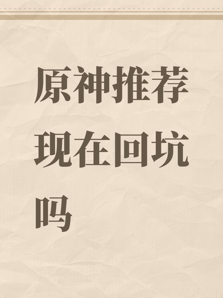 原神推荐现在回坑吗