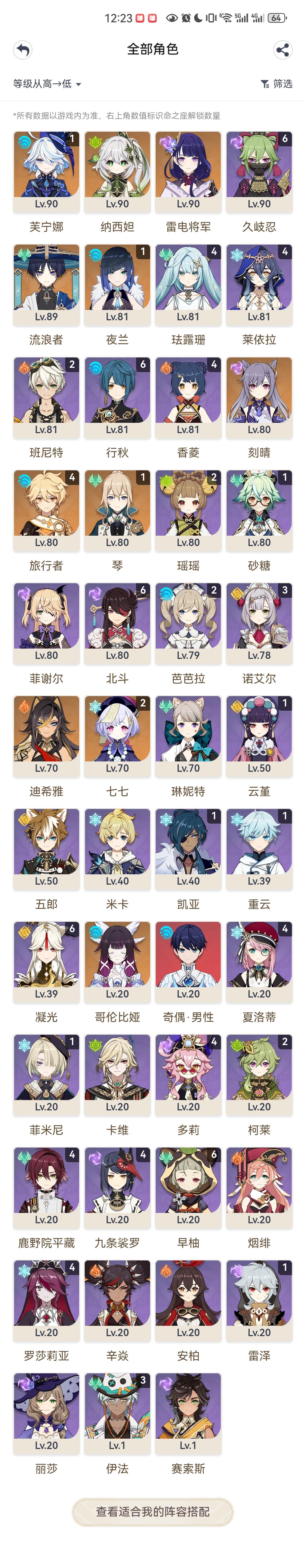 这个号是最近才开的。玩了好几天。才搞到23级。地图点位还有那么多没有开。也没有主c,提纳里是活动邀请来的。有点想抽少女。但是又怕抽了养不起来。