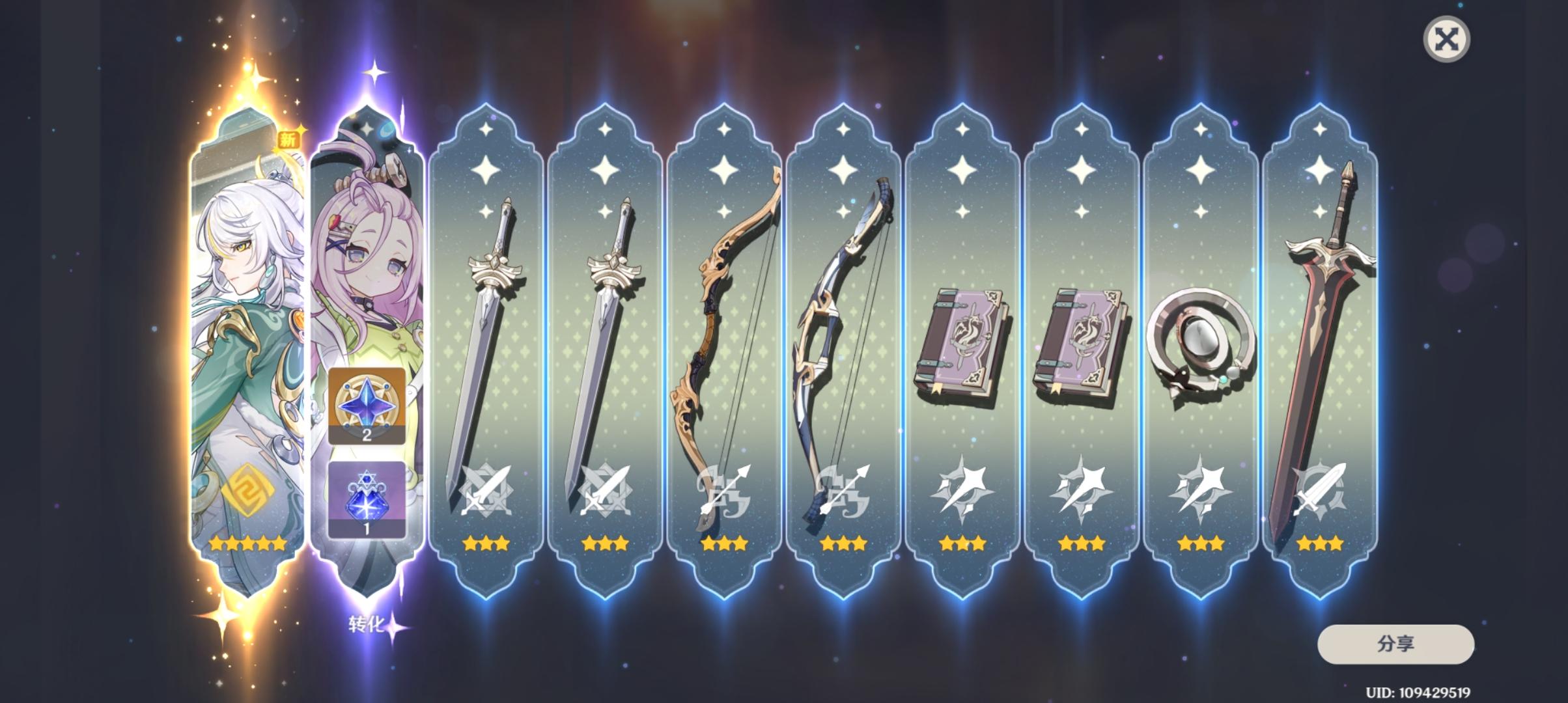 角色35出了没歪还带了一只新角色简直完美#原神 武器吃满了还好没歪,圣遗物也是强化嘎嘎出双爆,一天就毕业了#兹白 说实话,白马仙人也算是T0角色了还吃防御力天生抗揍,组队有少女或者叶落亚或者钟离或者五郎或者伊涅芙强度就嘎嘎高了!
