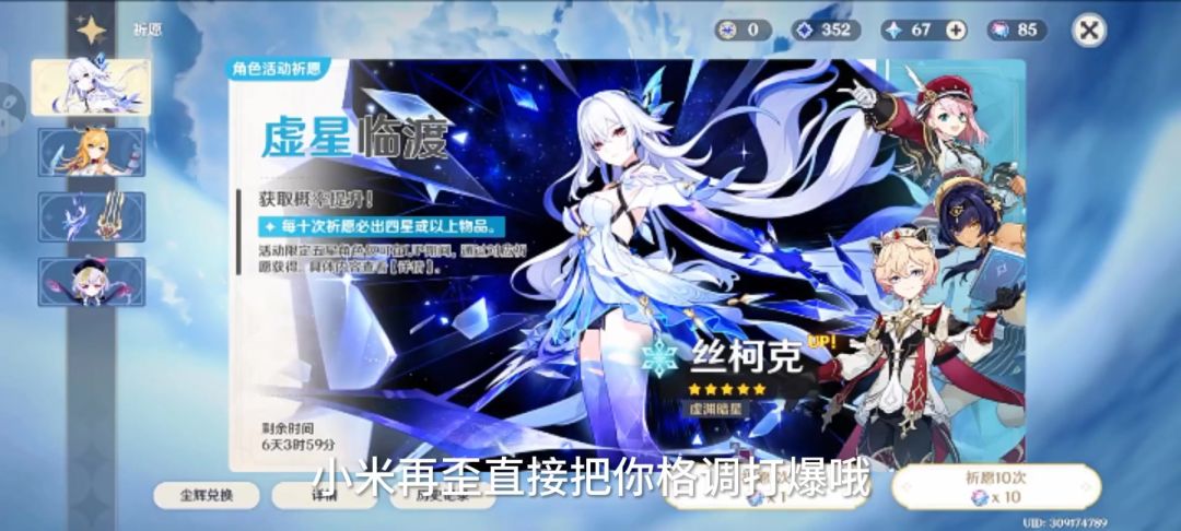 因为我之前的号很非,一直都是160大保底,没有例外,然后这次新出了个喜欢的角色(兹白),我就想重新玩吧,刷一个号品好一点的号