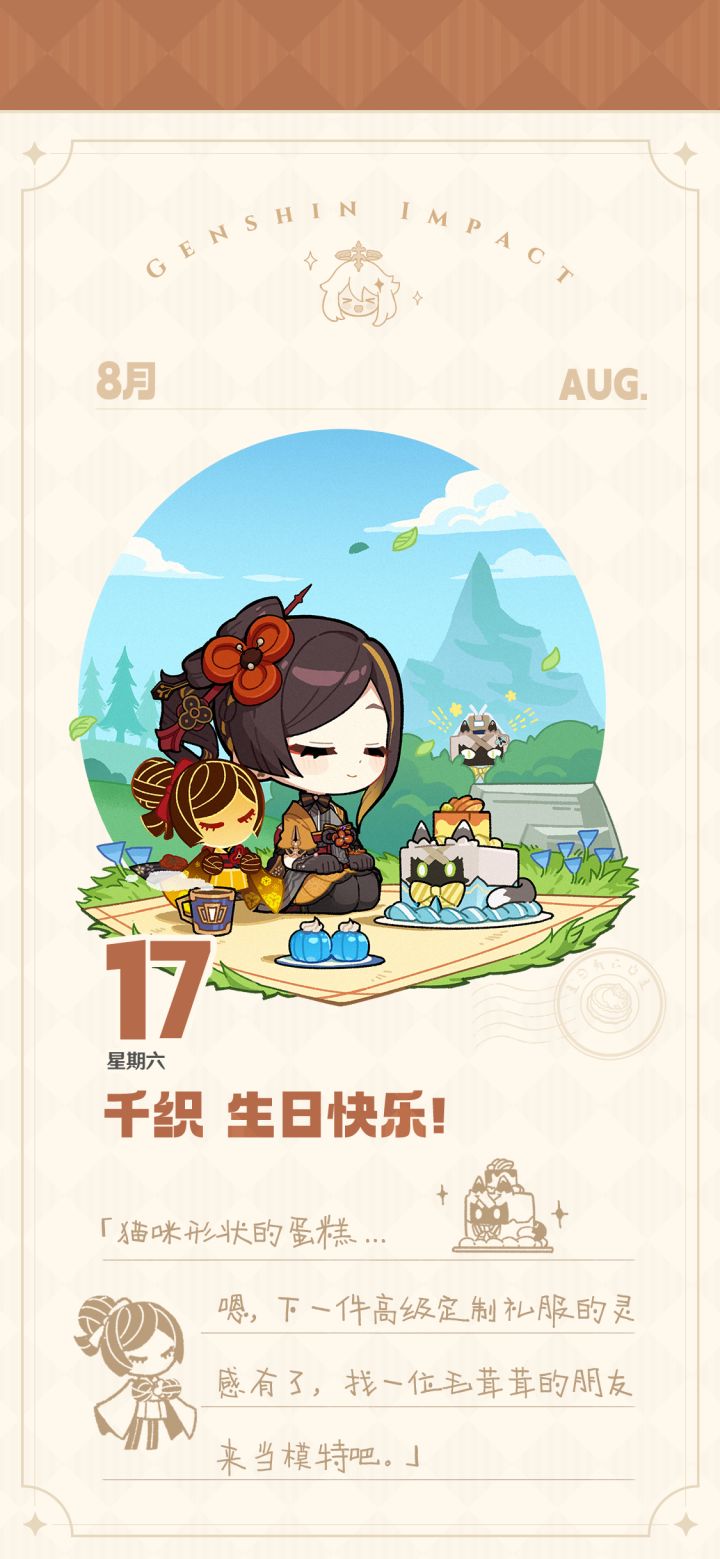 旅行者好姆!今天是千织的生日哦,一起祝她生日快乐吧!