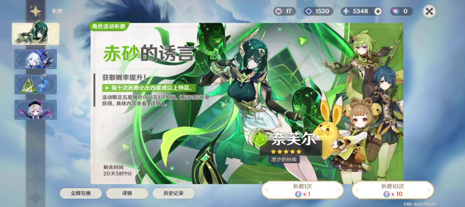 五星只有之前的菈乌玛和送的梦见月瑞希,也不知道怎么组队。悲伤,不用考虑哪一个了,本来想先抽两次看看有没有行秋,结果突然歪了,果然不管哪个抽卡游戏都很非啊。