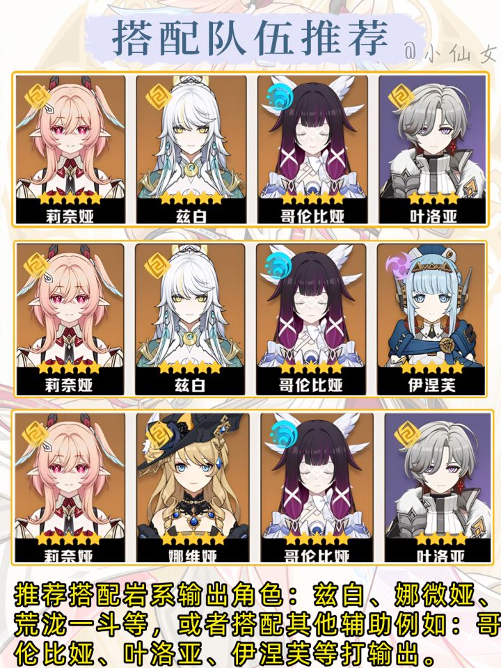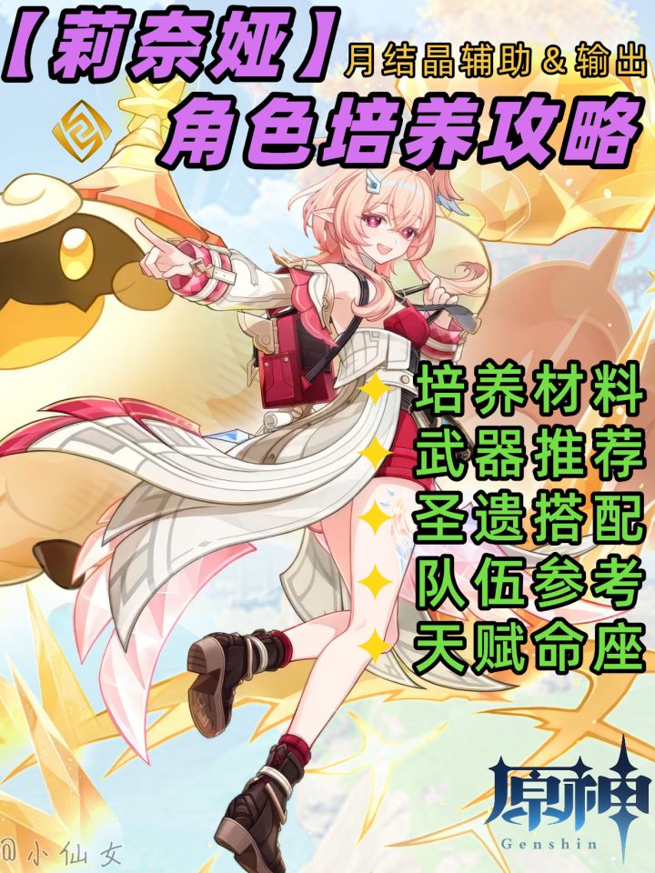 UID:247441820在定位方面,莉奈娅属于岩元素辅助角色,能够为全队提供元素精通加成、月结晶伤害提升、岩元素抗性降低以及群体治疗等全方位增益,同时自身还具备一定输出能力,可额外造成月结晶伤害。 【辅助能力】莉奈娅可借助战技或元素爆发召唤“露米”,在露米在场期间,会使范围内敌人的岩元素抗性下降。双岩共鸣自带20%岩抗降低效果,对标装备草元素四件套的菈乌玛,其最终岩抗降低数值预计可达40