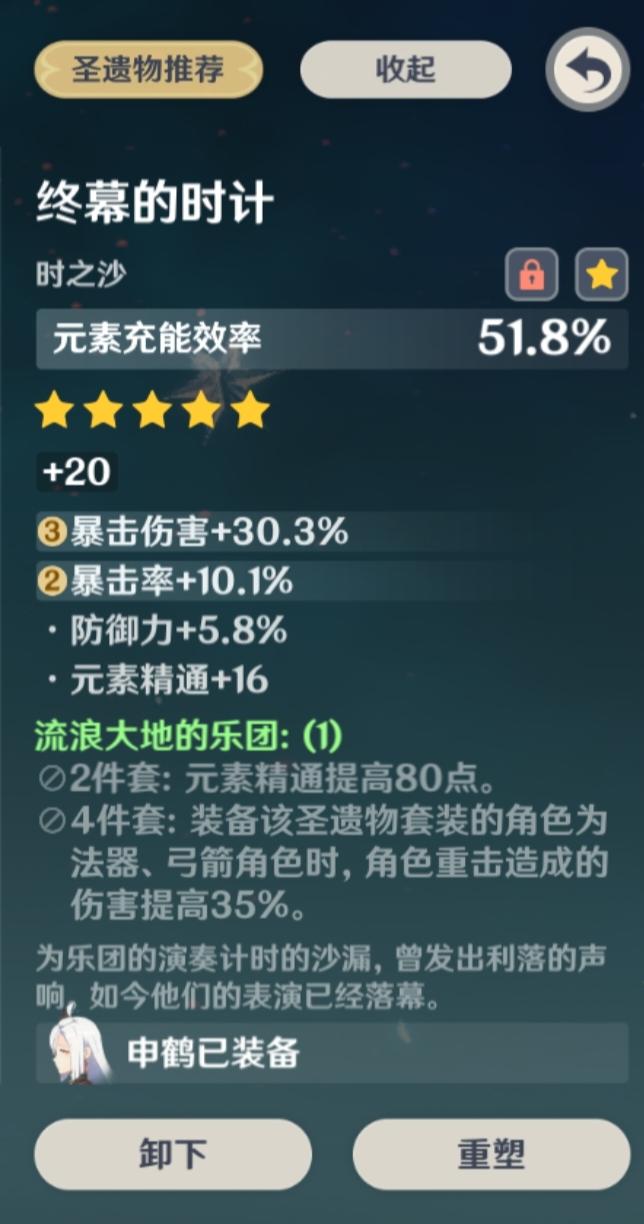 圣遗物太难刷了,干脆散件搭一套。花34.2% 3.1%羽29.5% 3.1%时30.3% 10.1%杯34.2% 2.7%头62.2% 0金可以斩断木,木可以牵制土,土可以阻塞水,水可以熄灭火,火可以融化金“霜雪啊,我已飘来”。
