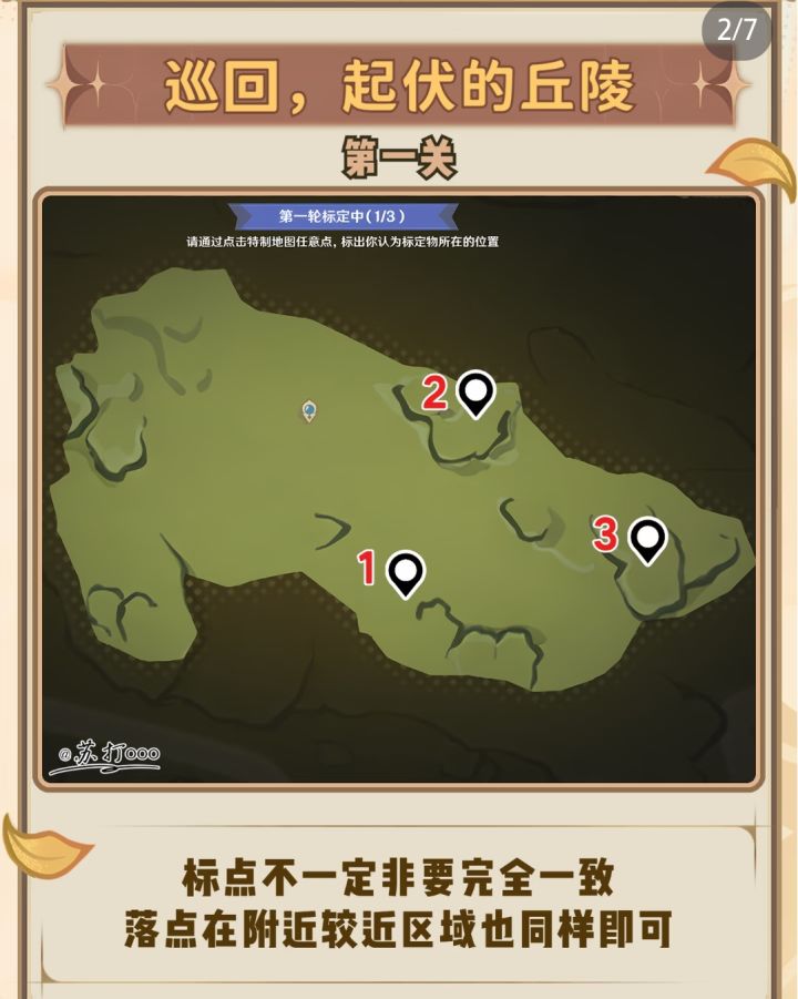 旅行者们!「测定摹绘研学」方向感噩梦?别慌,实测误差<1米即为满分💯,不必强求0误差!✅ 拿奖技巧每关标定3个点位,总分达3000即领完奖励。建议带上跑图/渡水角色提升效率,罗盘无需反复交互。🗺️ 速通指南👉 第1关:对照攻略图,直接在地图标记。👉 第2-4关:含多种点位组合,认准首个点位距离匹配的方案再照抄,标点稍有偏差也不影响拿满奖。🔥 活动倒计时4/10–4/20限时开启,42