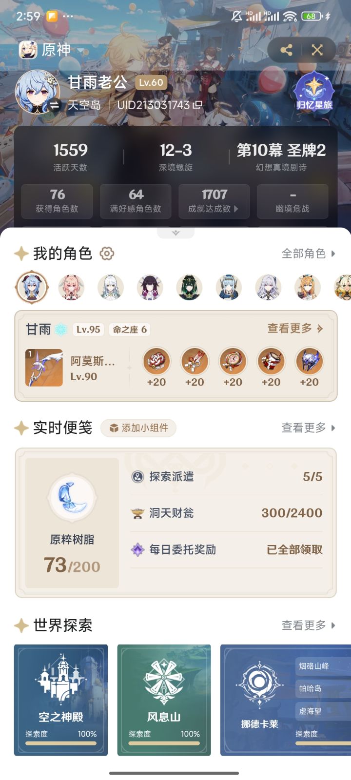 因为我之前的号很非,一直都是160大保底,没有例外,然后这次新出了个喜欢的角色(兹白),我就想重新玩吧,刷一个号品好一点的号