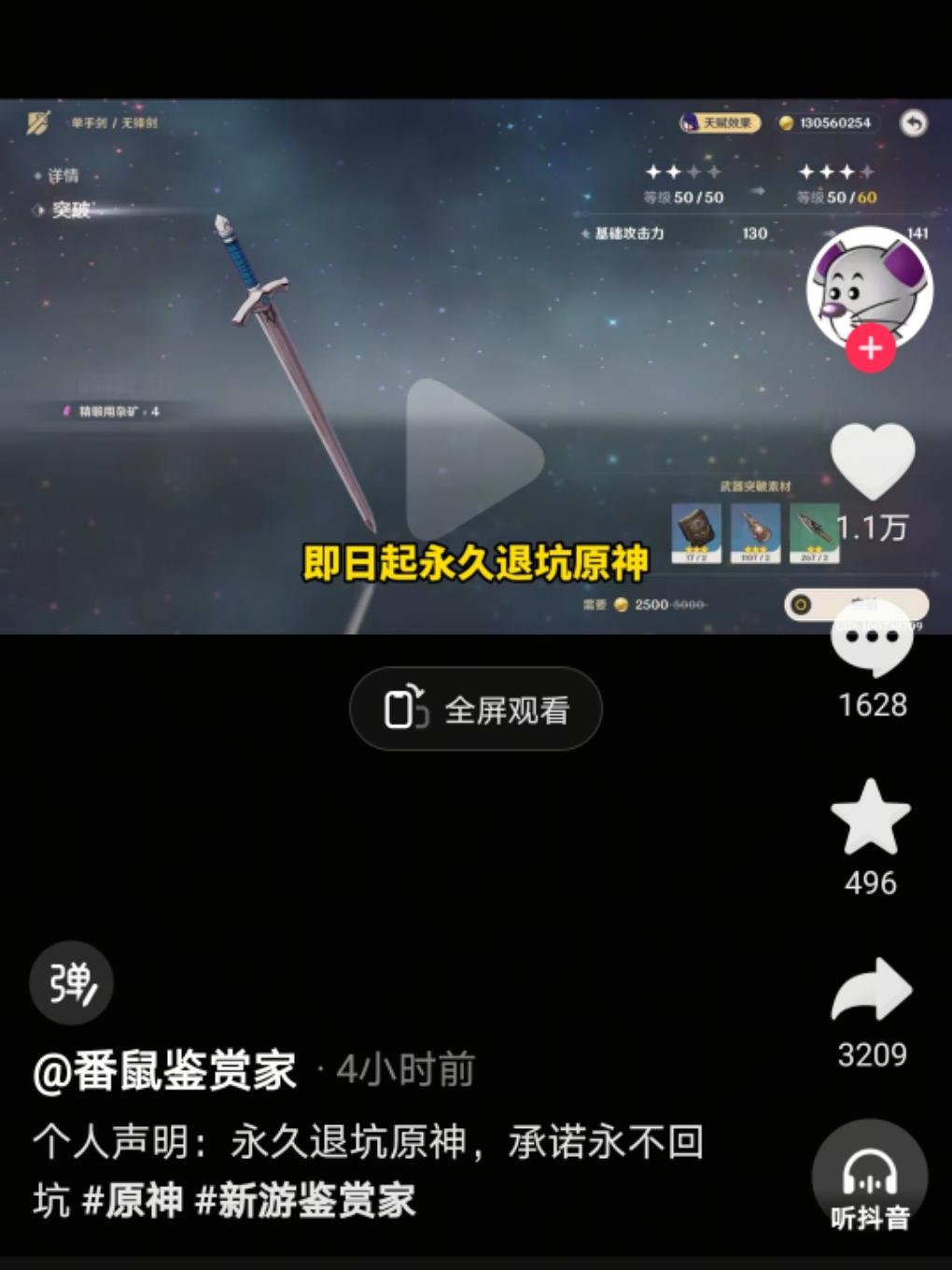 事情的起因是番薯(一个原神嘴替,靠品论角色获得流量,但也不能说特别坏,只是为了赚米罢了,有一说一,他出的每一期抽卡推荐我都是看的,对我们普通玩家来说真的很有用,可以省下不少原石,但以后这种视频就再也没有了)因为他心血来潮把自己号挂平台上估价,估出来723,他想着退坑之前来波大的,融号赚流量赚米,当时直播的时候也有很多主播刷礼物,一场直播下来少说赚了1w,比起卖号退坑,那肯定是融号更能⭕️钱啊,因为