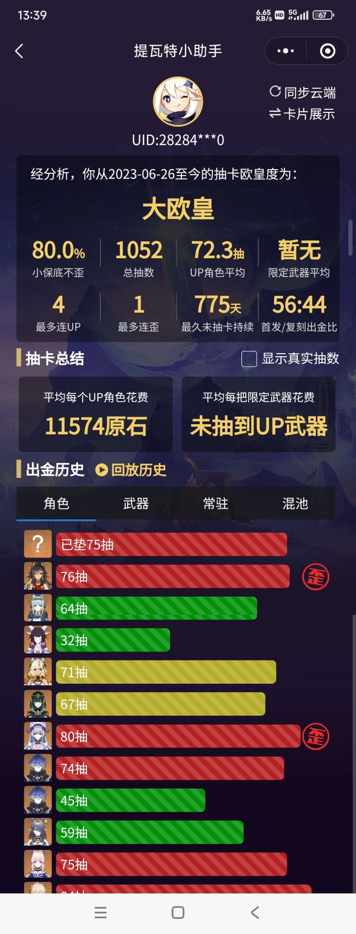 XP党本来打算抽个零命,结果十连三金了