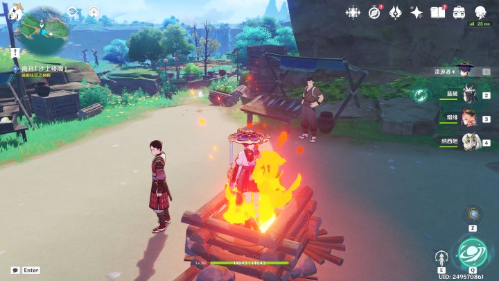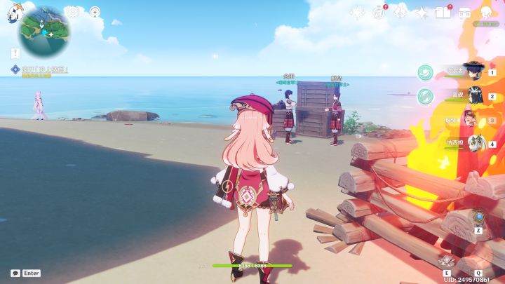 今天遇到心海的游旅逸闻,荧说找回哥哥之后不如就在海祇岛住下,风景很不错呢。后面碰见剑鱼二番队的朋友,说好久不见得开个聚会,结果过完对话真的给我还有几个剑鱼二番队队员传到了海边开起聚会来了......我以为聚会什么的会放到心海下一个逸闻的来着_雾(p3:这里的火不烫脚,不知道的少玩5块钱了_笑)跟他们每一位对话完之后,我不知怎的就逛到望泷村那边去了,又四处逛着逛着突然找到一块风水宝地,风景真好。
