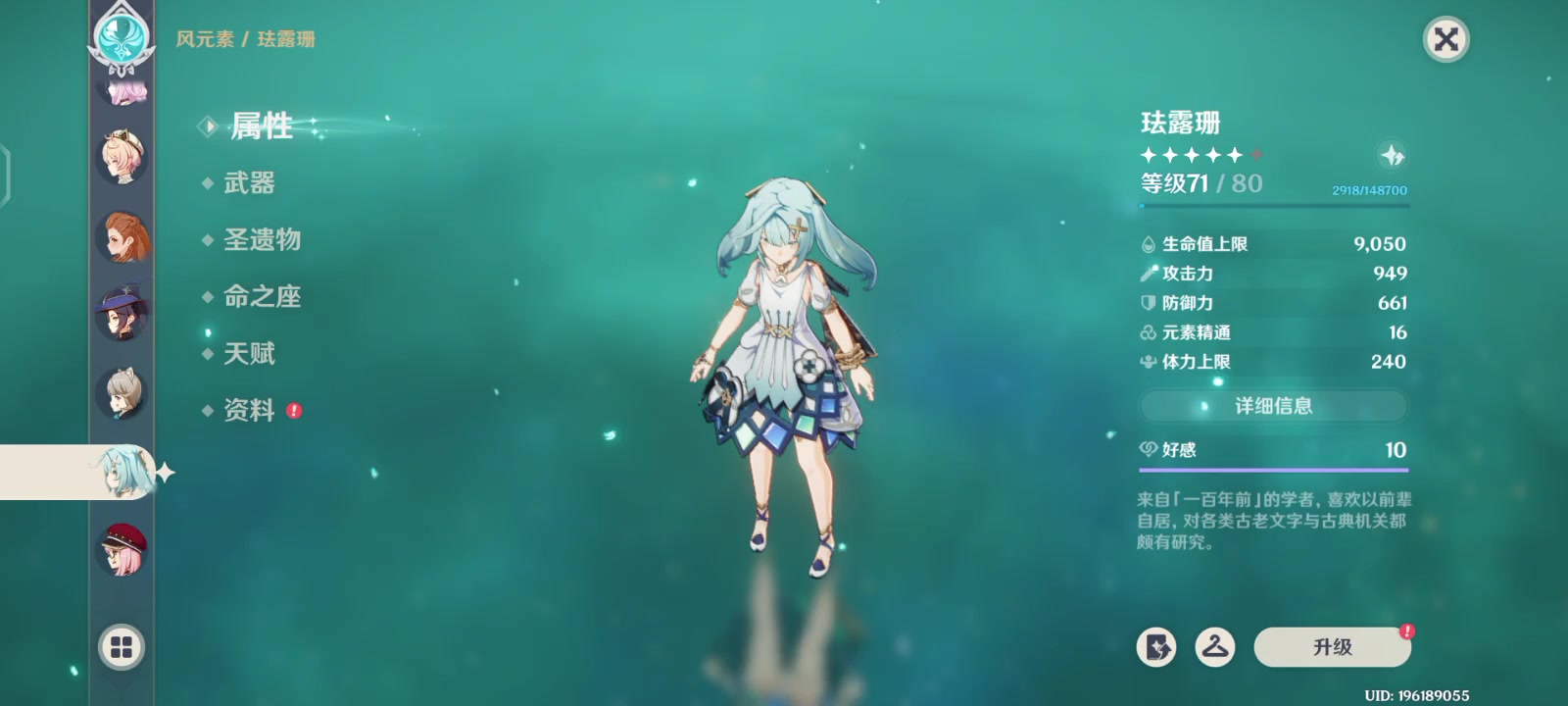 材料太缺了,连一个角色都没练好,更别说一个队伍了。也不会配队。目前配队是水神,草神,娜维娅,夏洛蒂。