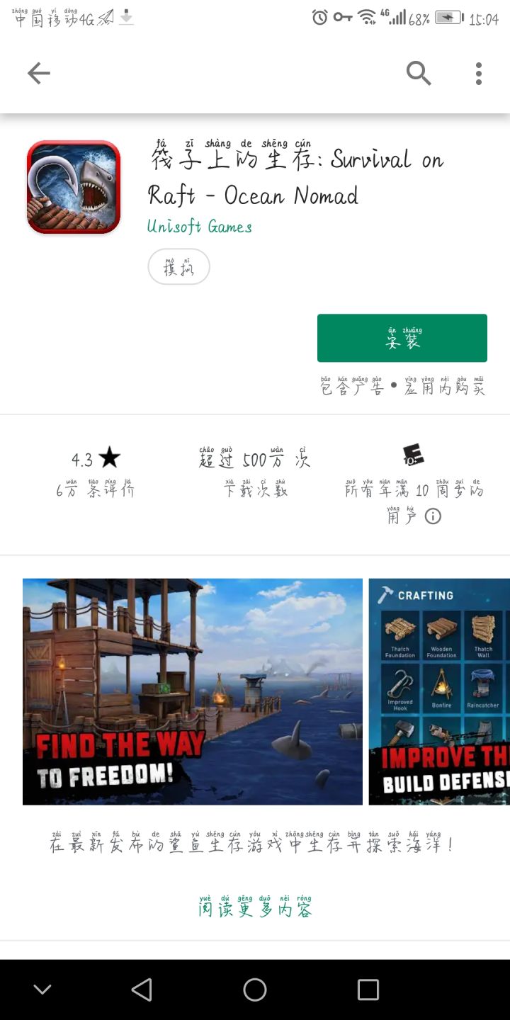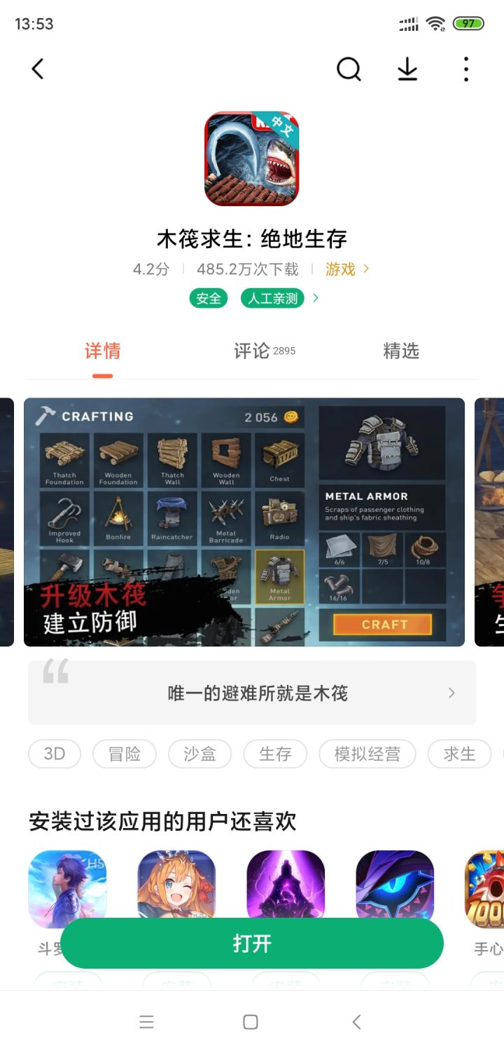 一天在手机应用商店乱翻的时候,发现一款《木筏求生:绝地求生》游戏,居然可以下载,Tap里都还没动静,下载下来里面内容大致一样