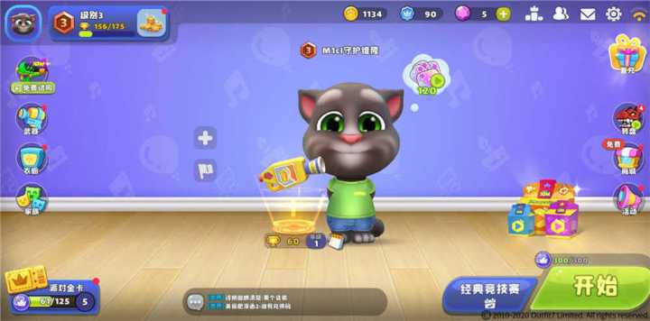你想当《汤姆猫荒野派对》中的射击小能手吗?那就得先来了解了解页面布局呀,上期我们说到了最上方以及最中央,现在就来讲讲分布在左方的功能图标吧。在左上角,有一个你自定义的头像,点击进去就是汤姆猫的“住所”啦,上面就是显示了你拥有的、你的名称以及你的战绩等个人信息。推出去之后,在下方有一个福利框,哪里是可以通过观看广告得到一次免费试用武器的机会,此羊毛不薅非你哉。下面就是最期待的武器啦!首先会看到