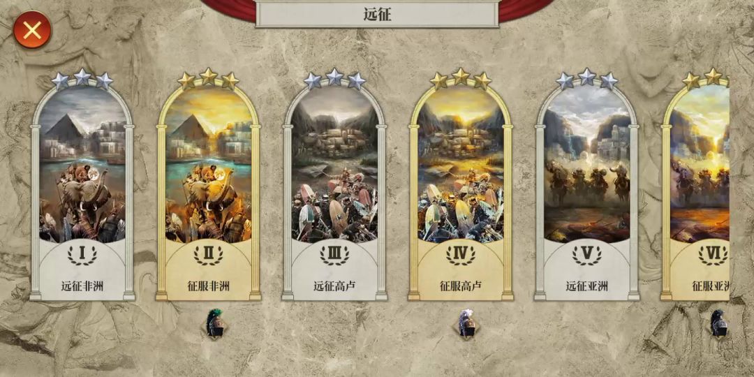 一.东方帝国-罗马人的撤退(7-2) 达成条件:在克拉苏阵亡之前击败苏雷纳 奖励:获得克拉苏军队控制权 如果与第二回合击败苏雷纳可以直接操纵左上角部队进入红圈 二.屋大维的崛起-突出重围(9-7) 达成条件:击败屋大维身边弓将.击败位于屋大维后方不远处步将 奖励:屋大维及阿格里帕撤退 三.屋大维的崛起-安东尼的撤退(9-4) 众所周知在这一关本来处于中立的雷必达会投向安东尼联手对抗屋大维.但雷必达