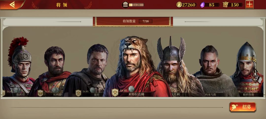 本次E社更新了两章节,为神谕所和海格力斯之柱,总共16章全部刷完(比之前每个章节少了2章),跟各位朋友交流一下,欢迎大家留言讨论。 一、战前准备 阵容配置:说一下配置,零氪党,无神将,所有将领技能全满,骑指,庞培,米特,贝利军衔执政官,有价值的将领基本买齐,除氪金神器外所有神器齐全。召唤兽猛犸五级,秦俑四级,狮鹫四级,哥布林弃用。 兵种配置:元老院行动力》生命》攻击》防御,弓兵、骑兵行动力外优先攻