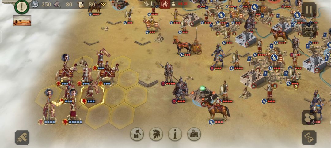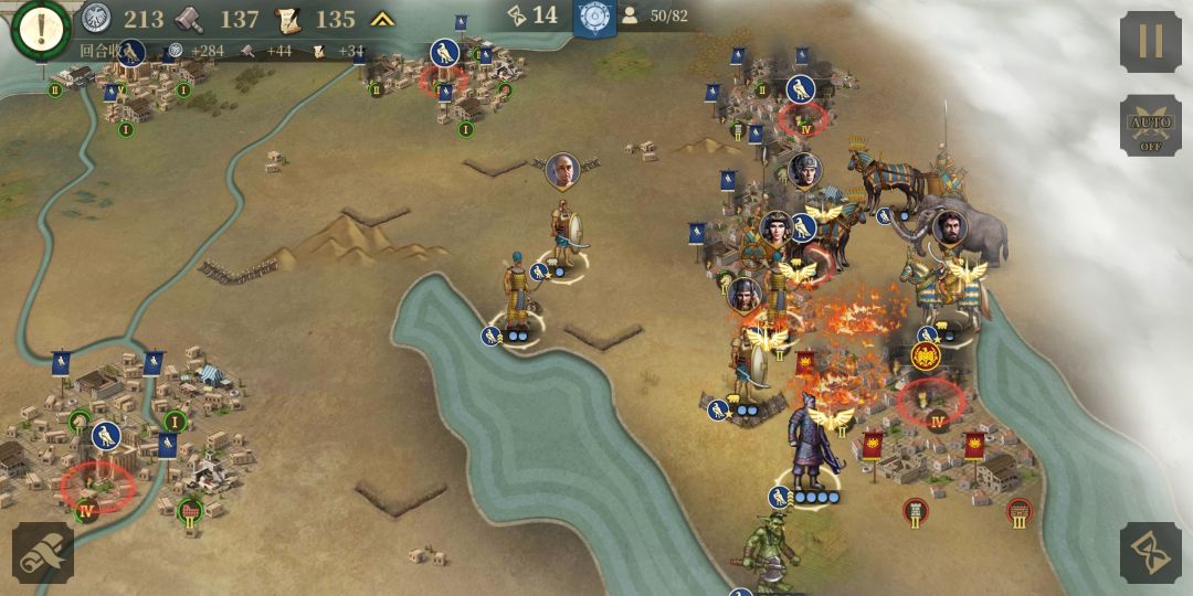 总结:跟欧陆一样,地图是按照从易到难设计的,新手玩家最好打三章战役,升升元老院,再买两个将领再考虑打征服。而到了后期元老院满级了,将领一大堆了,你就可以横着走了(当然,一些特别尴尬的小国另说),所以对于征服模式,我们的原则是,从布匿战争开始打,从大国开始打,从优势方开始打,这样你才能获得最好的成长型和游戏性。(对于刚一进游戏就买了四神的,你可以无视我) 注: 1.我所说的优势方是我个人认为的,不同