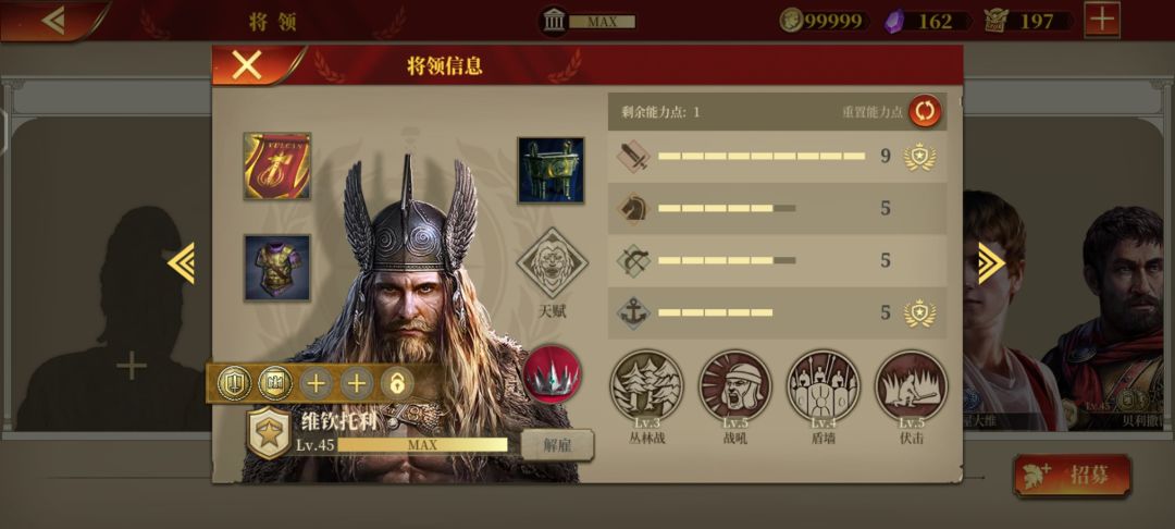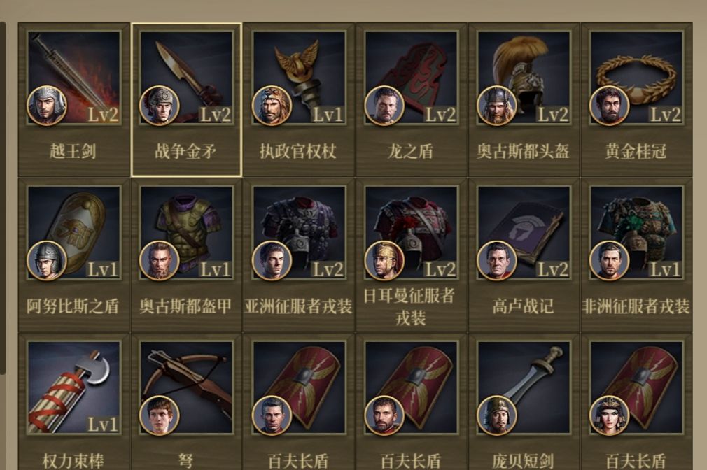 我们都知道维钦缺腿,带龙鼎或雷霆之盾后,装备区得带个行动力装。桂冠为啥不给他?黄金羽毛和双蛇杖分别给屋大维和德弓,桂冠是士气加行动力,给米特一举两得有腿又激活了优势。所以龙鼎和雷霆之盾我基本给贝利和维钦 回归正题,我把高卢战记给了同样没腿的贝利,剩下的行动装有运输车,奥古斯都甲=高卢戎装。军事地图只比运输车多1行动力还要章买,我不想买。这两者是+2行动力和无视地形对比,哪个更好呢? 这样看可能看不