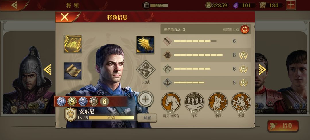 安东尼,腿很长,没了。纯征服将,al一般都不怎么看屁股。偷城嘎嘎快。屋大维,零氪但凡走弓指绝对不会考虑他。替补德工好用多了,还省个士气装。日耳曼戎装概率警戒,适用标枪给他最合适。同理把没暴击的高卢征服者戎装给庞贝,蛮子带高卢战记,buff照样能吃到,还不容易掉队。克拉苏,同征服将。补个移动无视地形就行。 李广,但凡兵种给刘邦多好啊?霸王只能回合内触发,加连击也不算亏。人称韩信卑鄙版,出个金戒指刷士