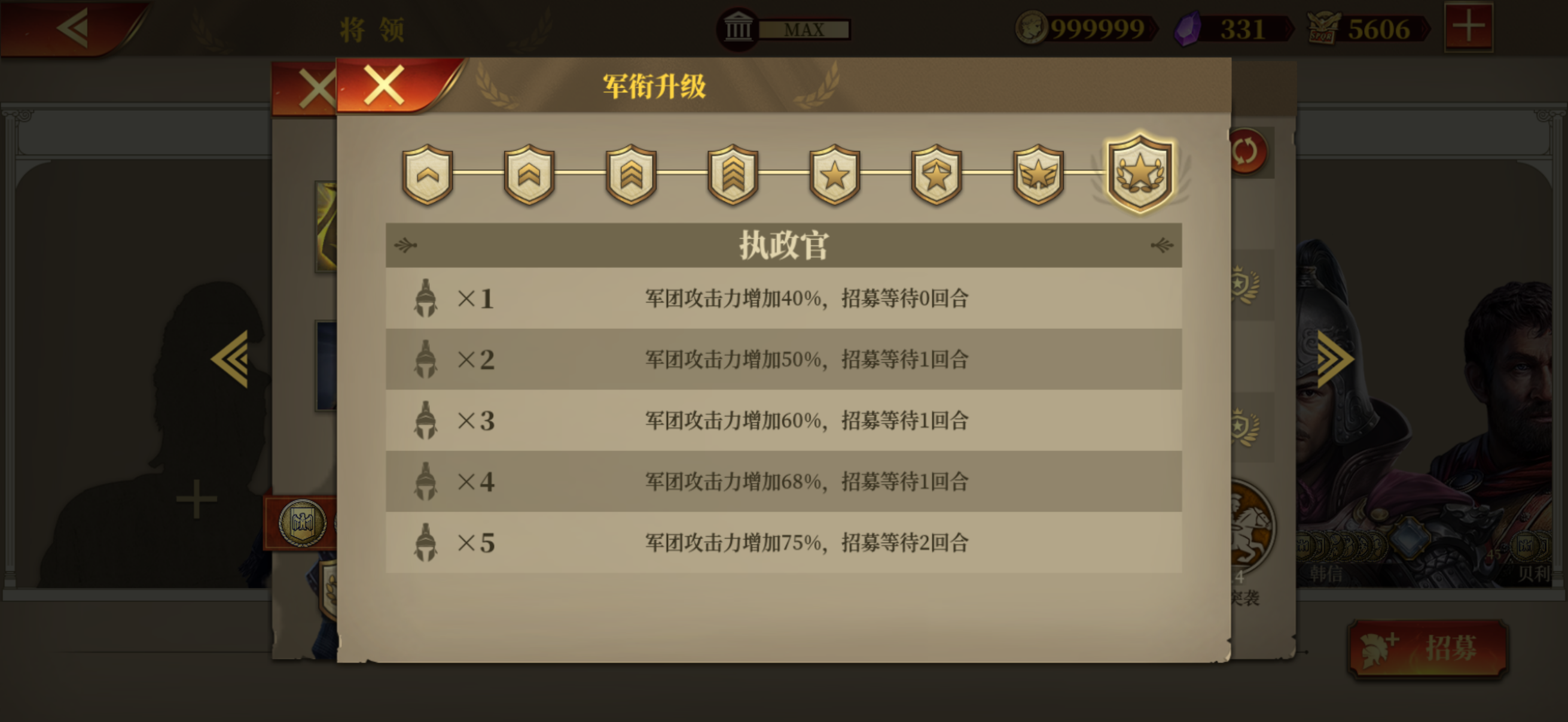 这游戏不知道玩了多少年了,从口口相传零氪玩骑指、米弓,不优先练步将的时候就已经在玩了,那时候的论坛很热闹,很多人教怎么打关卡。想了个把月,最终还是把第一个晋升机会给了庞培,毕竟在很久以前没有三体人将领的漫长岁月,它确实帮我扛下了很多火力,而且到现在我步将也只有庞贝和维胡子这俩。希望后边加冕lv9后不会让我失望