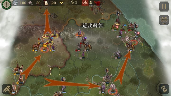 (塞多留战争)第一关 “比利牛斯之战”无视第一座城直接往左下走,此时会出现如图的一个敌方弓兵集火打死。(下图为进军路线)