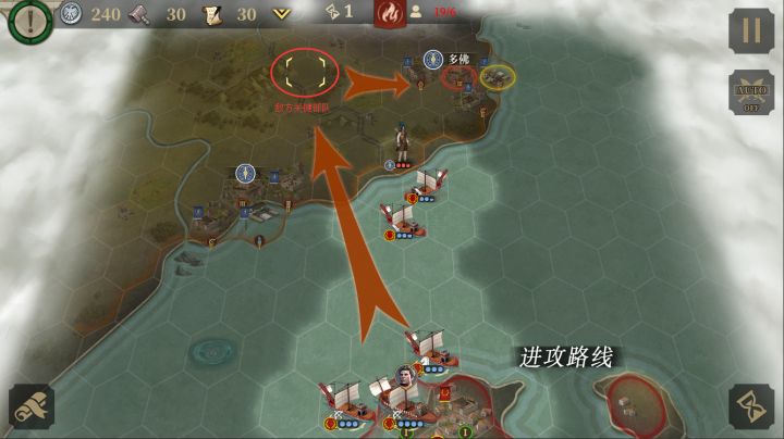 今天带来第六章战役攻略思路,欢迎各位指挥官留言讨论~第六章 主线-不列颠战争第一关:登陆不列颠根据剧情提示,开局部队需要在红圈城附近海岸登陆。此关不需要运营,红圈城2格外的海岸线都是敌人,次要目标关键敌人弓兵将领在红圈城左边4个格子。击杀掉敌将后占领城市可轻松三星过关。第二关:布立吞人的反击本关需要拆掉多余的建筑来建造经济建筑进行运营。黄圈物品是行军鞋。开局部队勉强够用可以不造兵,注意利