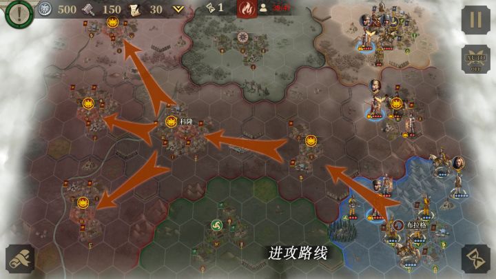 今天带来战役支线第九章的攻略思路,欢迎各位指挥官留言讨论~第九章屋大维的崛起 支线 - 安东尼第一关:高卢广场之战本关目标是占领4个关键地区(红圈城),守住2个关键地区(蓝圈城),15回合内达成目标。首先我们的第一目标是占领左上方的5级城,补充兵力后,再往下方4个红圈目标城进攻。要合理分配好自己的部队,进攻的同时要守好右上角的蓝圈城。第二关:摩德纳之围本关目标是守住3个关键地区,人口不低