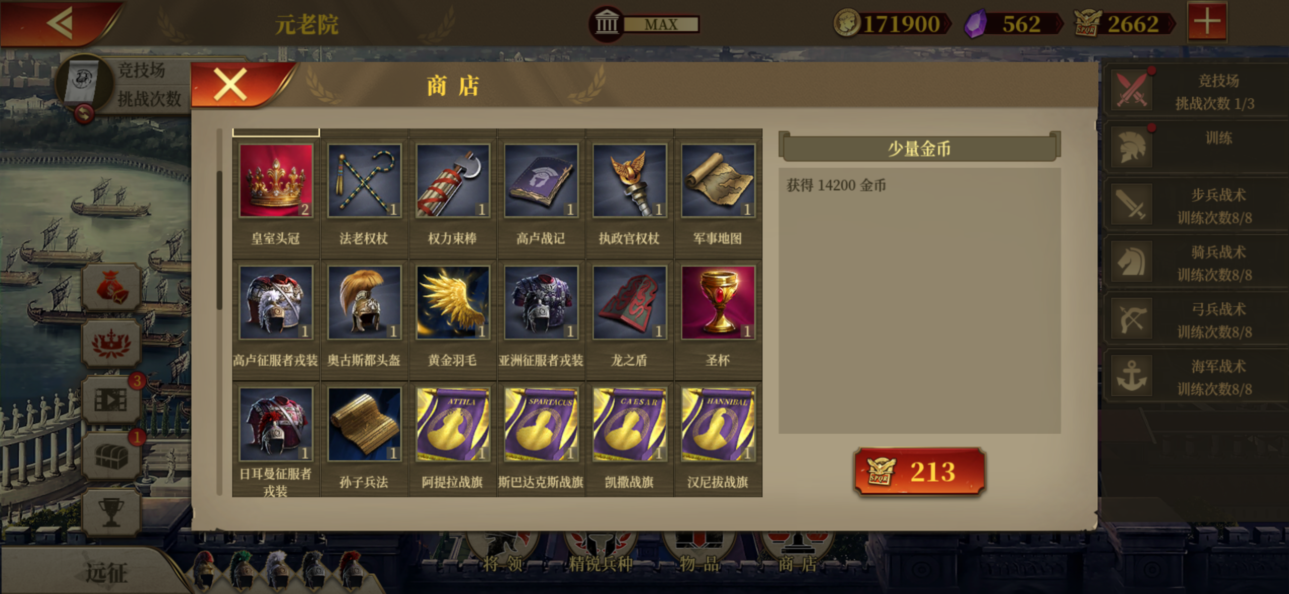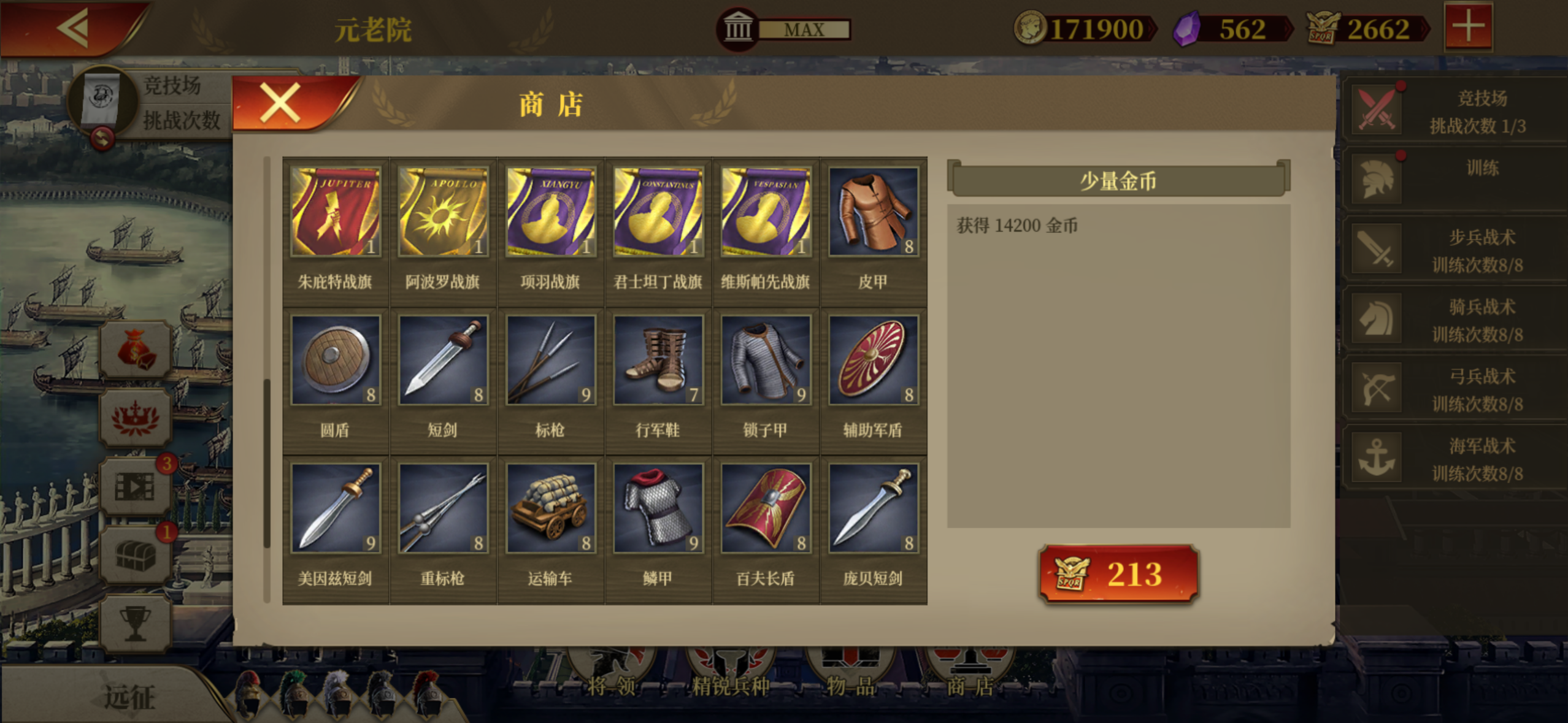 项羽是刚买的,专属装备还没去打。另外这个将我没有的情况下,我怎么知道他用的什么兵啊。这个号好几年前玩的,看到更新了才回来的,听说新英雄居士坦丁比汉尼拔还厉害了?我这已经三个骑兵了,还是个外国将,不太想搞了。神器里面还有两个盘古斧和奥林匹斯矛关键不。😊