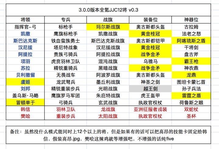评分标准:五星神将,四星半无脑强,四星很强但有局限性,三星半强,三星包括三星以下凭借个人喜好谨慎购买.
