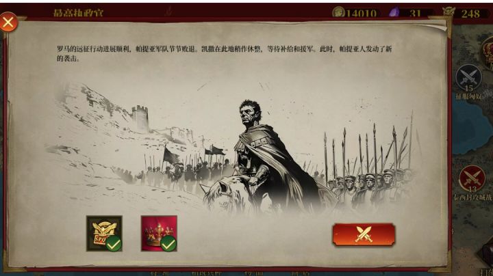 服了,上了利息尼钨丝,霍去病,安东尼,米弓,维什么利,埃及艳后,还有几个做任务送的将领,几乎都满级了,按照攻略还是打不过麦松战役……打都打不动,将领都被暴打致死,每次都卡死,是不是我太菜了