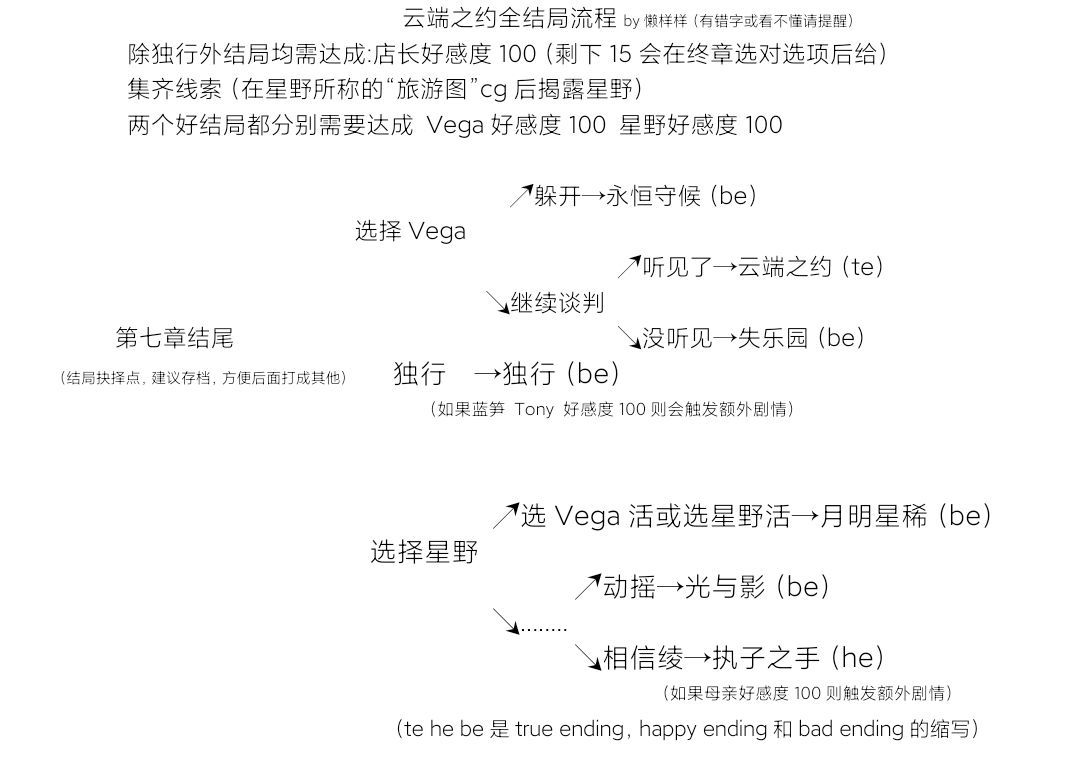 之前Steam上线就冲了!攻略也是那时做的,游戏恐怕都玩了五六七周目才做了这么份完整攻略,泪了。 不知道移动版和Steam版本会不会有出入,目前我也在玩移动版,如果有出入攻略会实时更改哒! 楼主整理不易,且纯粹是为爱发电,转载请标明出处,谢谢配合。 祝云端之约大卖!!!