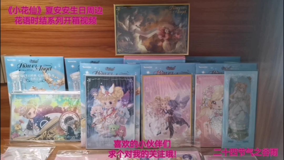 《小花仙》动画周边四时风语系列开箱视频,在两个多月前的时候。我支持了一下四时风语系列,这次是以夏安安、贝瑞蕾娜和节气花信为主。这次有流沙钥匙扣、亚克力杯垫、亚克力立牌挂件、山茶花发夹、节气花信的马口铁徽章吧唧和mini徽章,还有赠品mini扇子。BGM背景音乐,是四时花语春夏篇动画的片头曲【梦想小滤镜】完整版。喜欢的小伙伴们,求个对我的关注哦!#小花仙 #小花仙动画