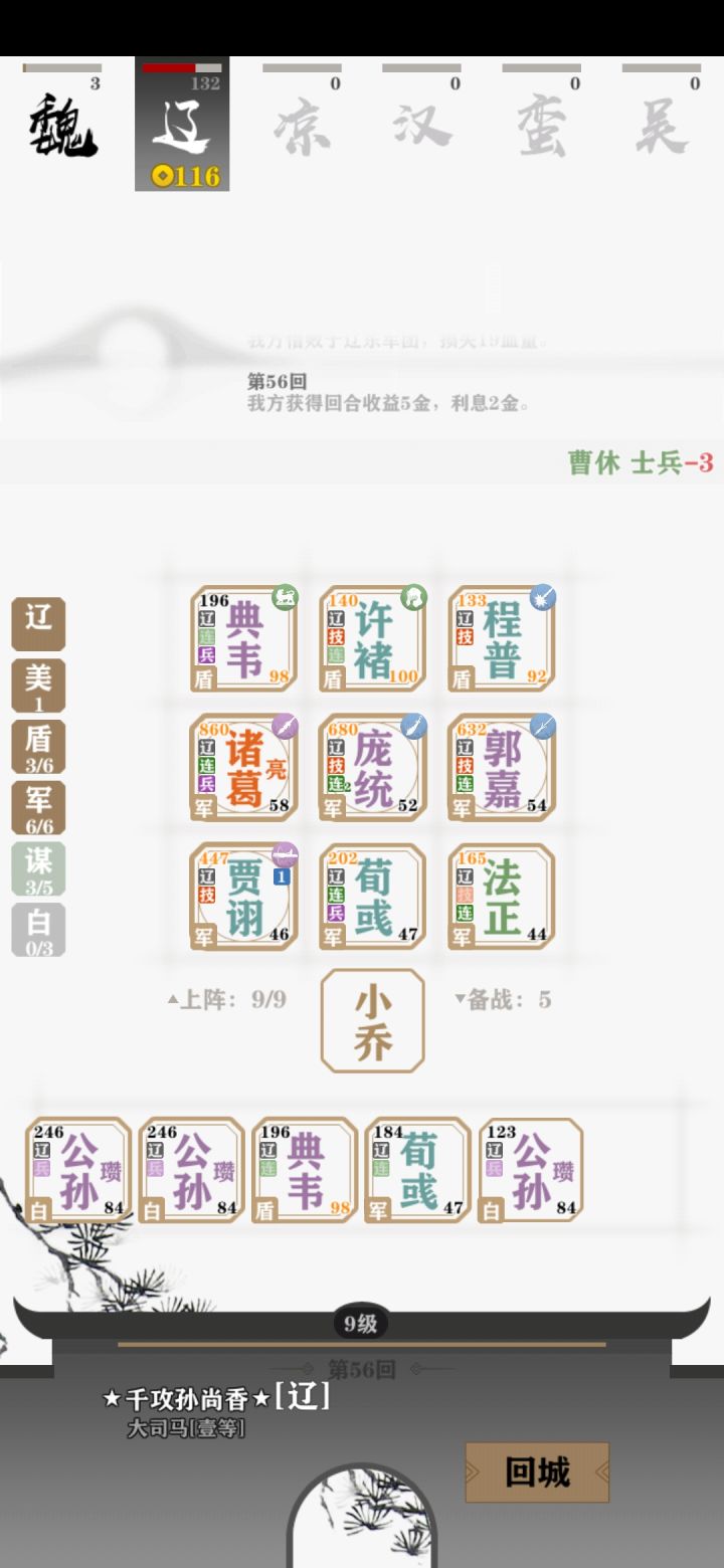 势力人物全部解锁之后声望也过万了…所有类型阵容都试过赢后。感觉太单调太无聊了,不是很耐玩,一人物太少,二内容也太少不够丰富,只是不停的对打,玩到后面来来回回都还是重复的人物一样的套路。还有一个就是我希望能加上个背景音乐,不然只有打的时候刷刷刷几下的声音让人好无语…总体来说游戏还是不错的希望官方能听下玩家建议不断玩善增加耐玩度。