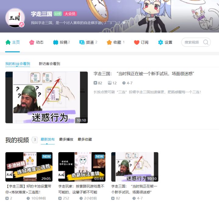 字走三国官方号入驻B站啦,求亲亲抱抱举高高~