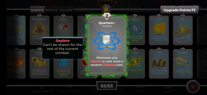 总的来说,这游戏还是非常简单的,开局5点能量,火堆更离谱,不仅回血和增加血量上限二选一,还能顺带免费删一张卡,游戏内的卡能直接在对局外升级,小怪、精英和boss爆的牌稀有度差不多,即使一个精英不打也很容易凑到大多数关键牌。