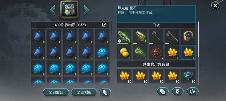 2 体力靠吃东西就能恢复,大多数时候省一点用都能跑图。箱子是联通的这个小小的改进,一下子找东西方便了很多。