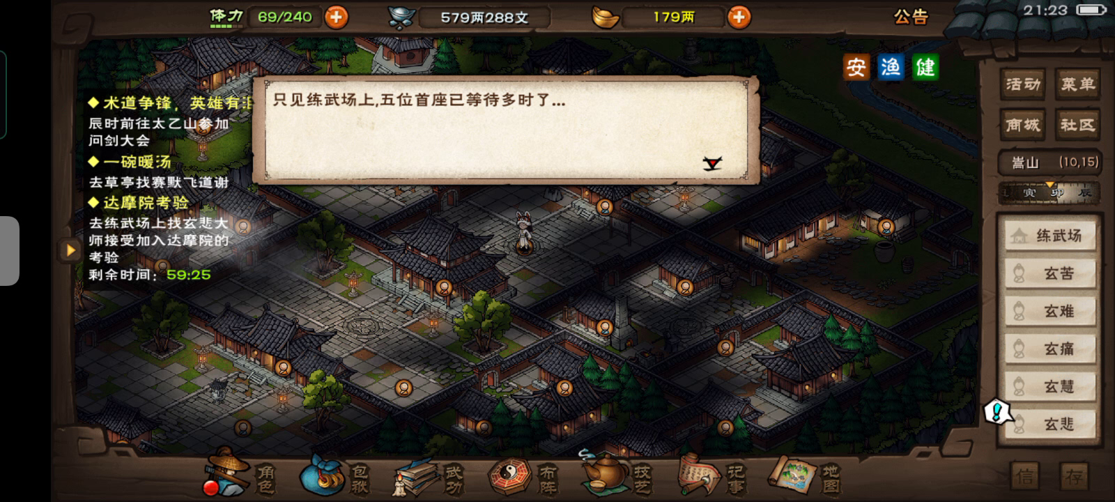 武道榜一,以下是是结合个人以及wiki的攻略总结 1.开局后在忘忧村主线结束后立刻去获取铁砂掌并且升级到5层,解锁眩晕【学后不可传功,谨慎选择,打九幽可用】 2.在南阳渡主线结束后立刻去获取点墨剑法并且升级到7层,解锁点穴 3.请尽快!优先!火速!学习雁行功并且升级到9层解锁二段跳跃,同时学习水上漂[可以不升级],后面文皇经【前期必拿】和一些宝藏需要。 4.在完成3的期间每天购买文房四宝和麻绳,(