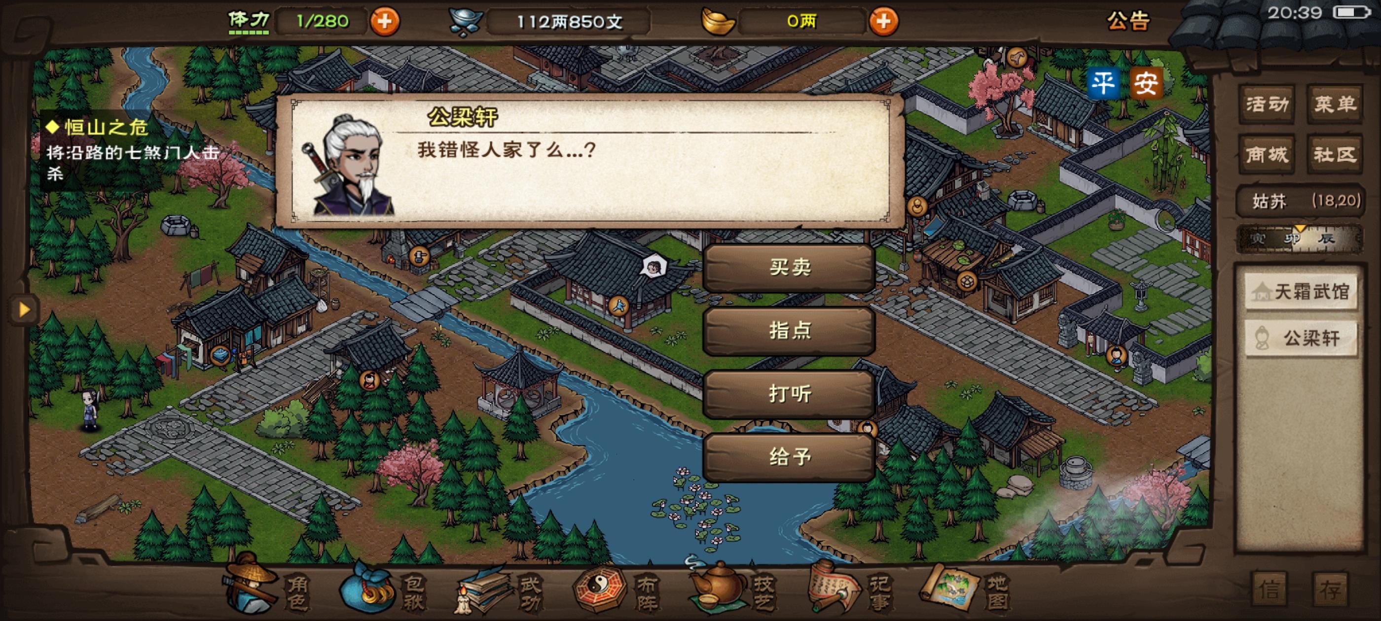 我的邀请码AAFYFG,以下是萌新40级前可以做的事 副本及NPC仅显示副本等级,非等级限制;故推荐战力并不具有确定性,等级指的是主角等级;随从可超过主角两级。 10级: 武馆指点 初级 (3回合内获得4000阅历) 加入门派少林寺(仅男),泠月宫(仅女),太乙教,天刀门,苍狼门 学习垂钓,炼丹,道学,佛法,音律,冰心诀,烹饪各种技艺。(请移步技艺与秘技) 非泠月宫弟子可以通过赠送礼物,开启