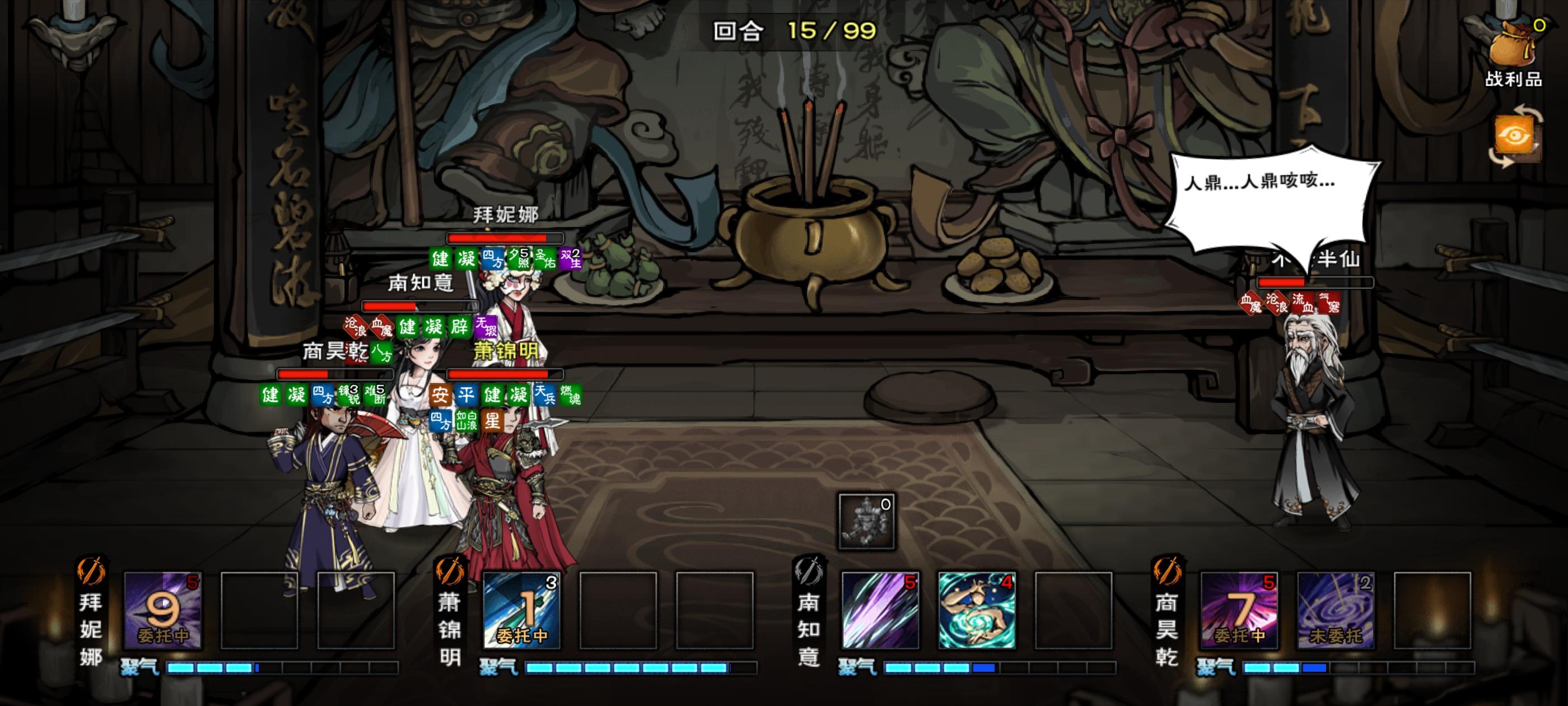 闻香老二开盾的时候会给自身上一个雪鹊buff,这个buff可以被清除,清除后林会跳过三回合直接解除盾并给自己上攻击回血双buff 林转移buff给药人后会让沧浪劲变成暗流劲减10免伤,本来想看看会不会好打一点,结果发现了这个情况