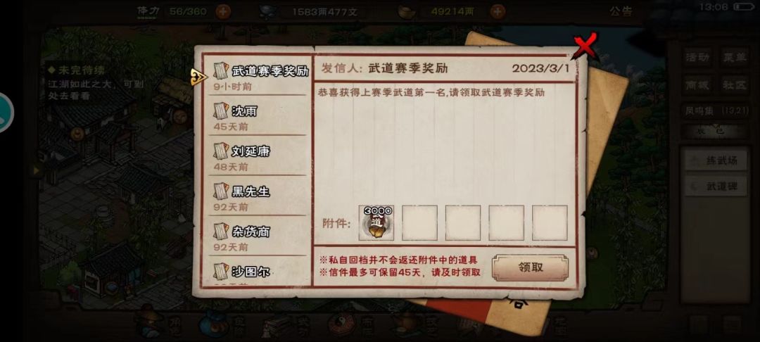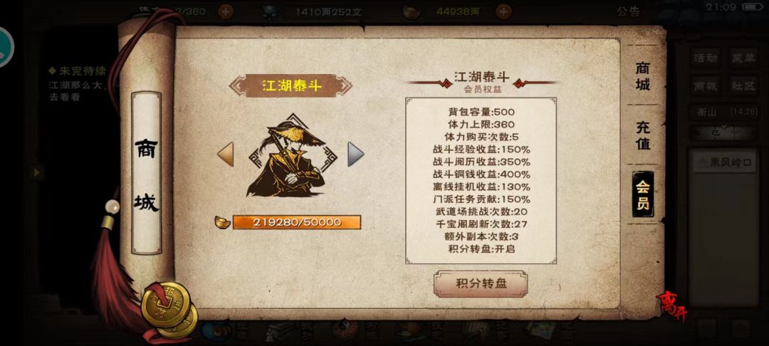 我的邀请码AE2112,烟雨江湖了解一下 除了游戏面板中显示的有什么是我们所忽略的细节(也会有疏漏欢迎大家补充) 我接下来将从以下五个方面来讲解, 银子,修为,阅历,材料 银子的主要来源是副本与装备, 挂机青城山(每天多5两),玉面(2两),巨鲸压标,乞丐 每天都菜都要吃满,推荐酸菜白肉,桃花坞的消食丸也可以吃一颗 然后就是家园炖菜和凉茶了,拘魂泡澡也可以每天多20体力 修为一个日积