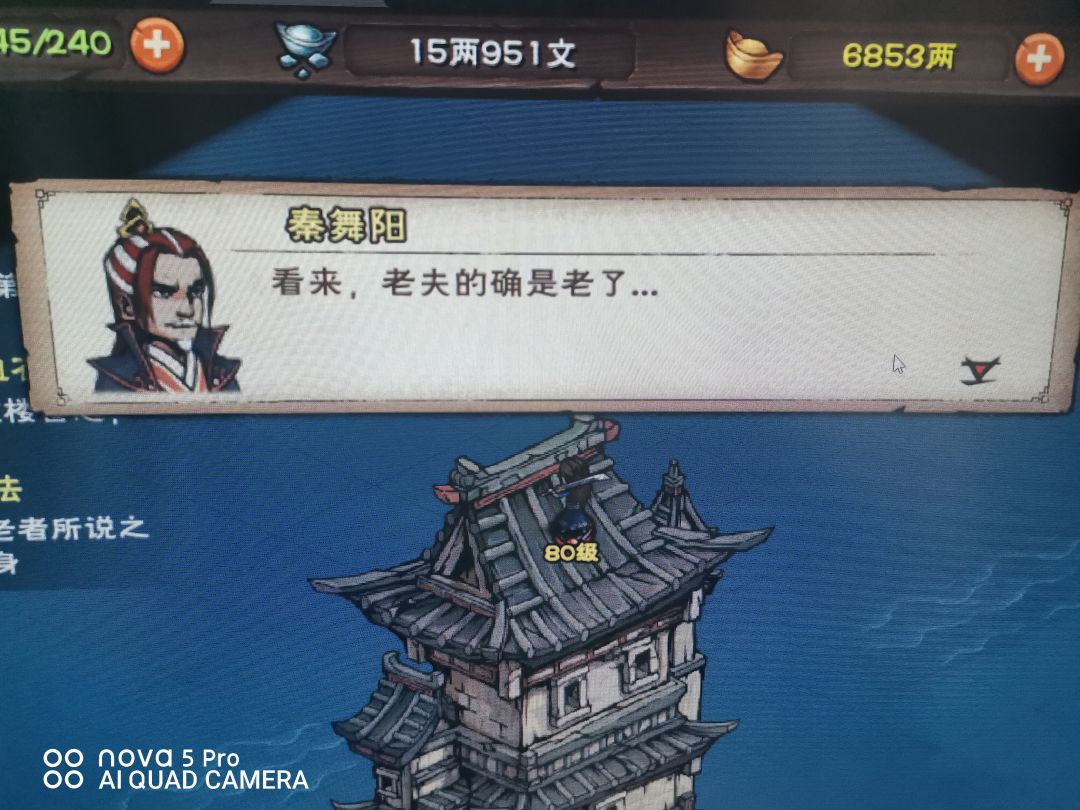 秦舞阳过了。天刀,80级,43W战力战力过老秦。纪念一下,顺便分享一下经验。 站位和坦度: 阵法阴阳阵 (1 、101、 1站位),主放最后(必须保输出最高那个),主T有一万2左右的血就够抗完最后一个大招,秘籍全上。 技能: 我镇派只有商哥(因为学了龙象暂时主T)龙象六层 ,其他伙伴全上乘(包括主,还在做镇派前置)。各种BUFF都能用的用上,我的是摧心掌,减防,每回合掉血1500。 操作方面: S