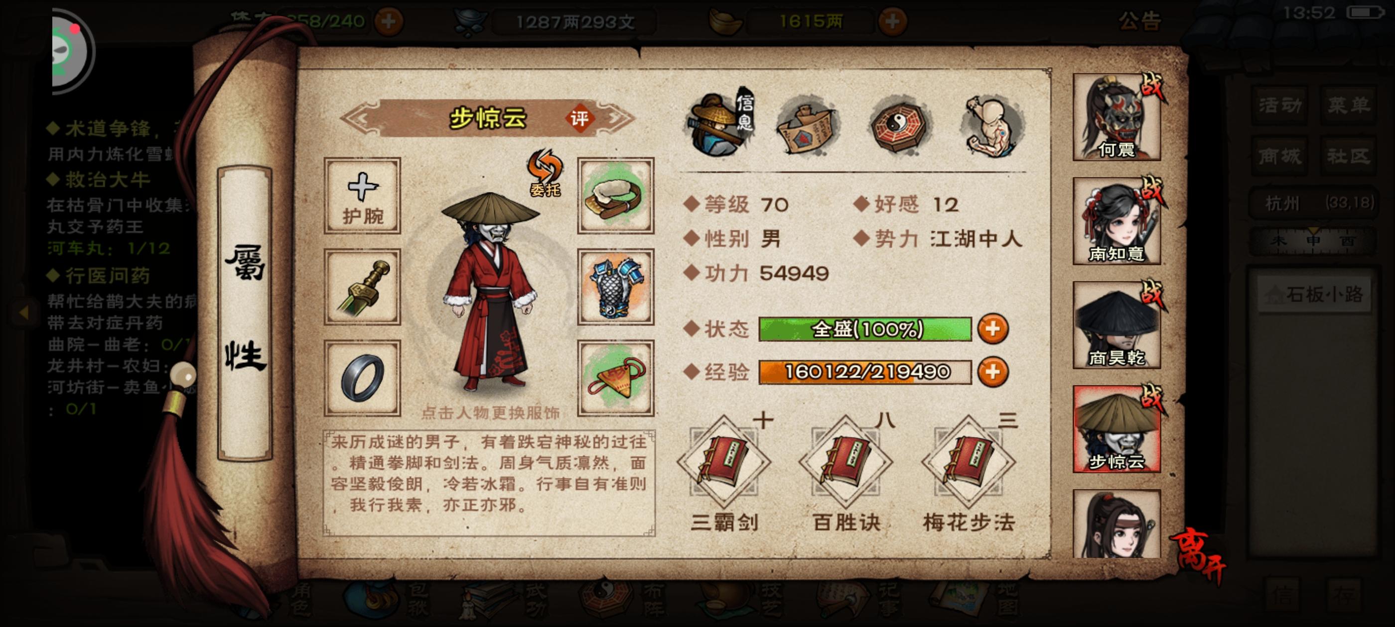 写在开头的话:写这个分享无任何引战的意思,没有去说哪个角色好,哪个角色不好,而是站在我的角度,在游戏体验中去感受他们,也并不是说我的搭配就是攻略,而是一个游戏思路,如果各位能从我的某一句话中突发灵感,玩出新的玩法,这才是我想要的。 以下仅代表个人拙见,含资质详解、武学搭配、发展路线及未来设想,以下均为原创且分享出来是为了更好的同大家交流,欢迎大家指出不足和错误之处。 以下分享仅分享传统路线,奇葩搭