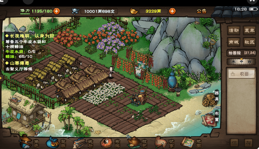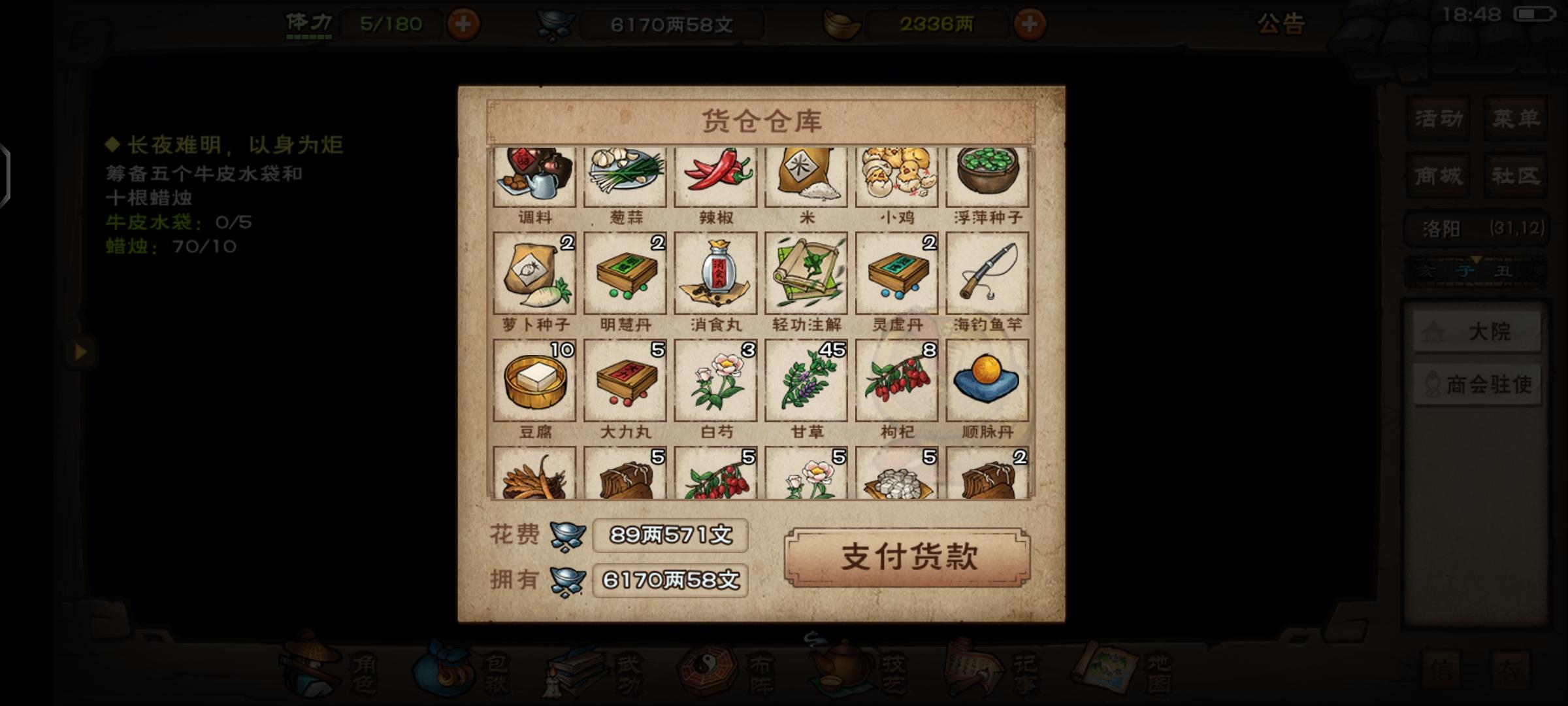 嵩山(1张):少林库房 洛阳(3张):药店,肉贩,杂货摊 南阳(2张):药店,杂货 太乙(1张):太乙库房 凤鸣(2张):药店,杂货 成都(2张):药店,八卦门 大雪山(1张):宝库 雪原(1张):部落宝库 十方集(3张):药店,裁缝,铁匠 落霞(1张):药店 姑苏(1张):桃花坞 杭州(2张优先级最低,趁着每天的紫阳指点去一趟):药店,菜贩 归云岛(1张):宝库 幽州(3张):药铺,肉贩,菜贩 塞