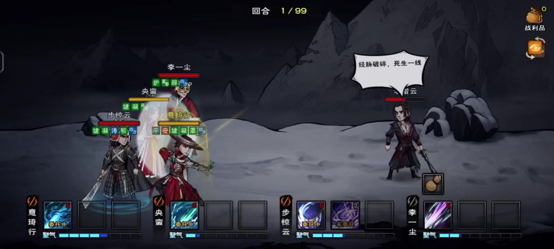 风林火山是用小星云打的,李雷云就得控制他的10层伤势,用奶拳奶不赢,主的大星云可以和奶随交替放技能,其他两个随从不放技能,主的伤害高了会把李雷云砍死,#烟雨江湖攻略 不要进入第二阶段,把免伤装备给主,要不会被李雷云锁头暴毙,老三,四时阵没丹药了,也打不过,闻香林雪鹊还没过
