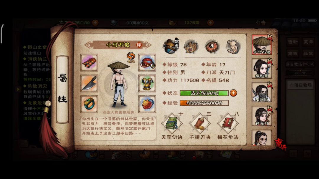 在这个风和日丽鸟语花香的夜晚☀ 我去问鱼儿找素材 结果这货竟然不给我😱 那我就只能呕心沥血写一下门派攻略了🙏 希望大家多多支持👍 天刀门无非是最有江湖味道的门派🍶 某位不愿意透露姓名的黄瓜先生这样说到 老楚曾经说过天刀虽无双,但是也要低调。 一看这位童鞋就没有听老楚的话😠 回去把太乙三式重新操练一遍😂 但的确天刀无双不是白喊的👏 很多萌新也是因为天刀犀利的刀法的响亮的名号被吸引的✔ 但是进入天刀之