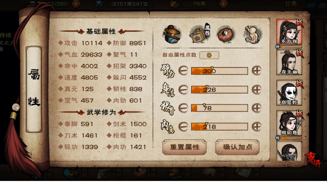 烟雨江湖天刀门根据的角色特性和团队培养方向而定,如果自己想要培养一些前排角色,可以将属性点数主加在根骨上,一点根骨的属性会提升角色的5点血量,如果自己想要培养一些后排输出的位置,可以加属性点加在臂力上,天刀门都是大多是刀法武学,臂力提升的攻击力可以让角色的输出能力得到很大的提升。 烟雨江湖天刀门武学的影响数值多为臂力,像天刀三式、无我快刀、无我重刃等比较常用的武学都是受到臂力影响,天刀门的武者无论
