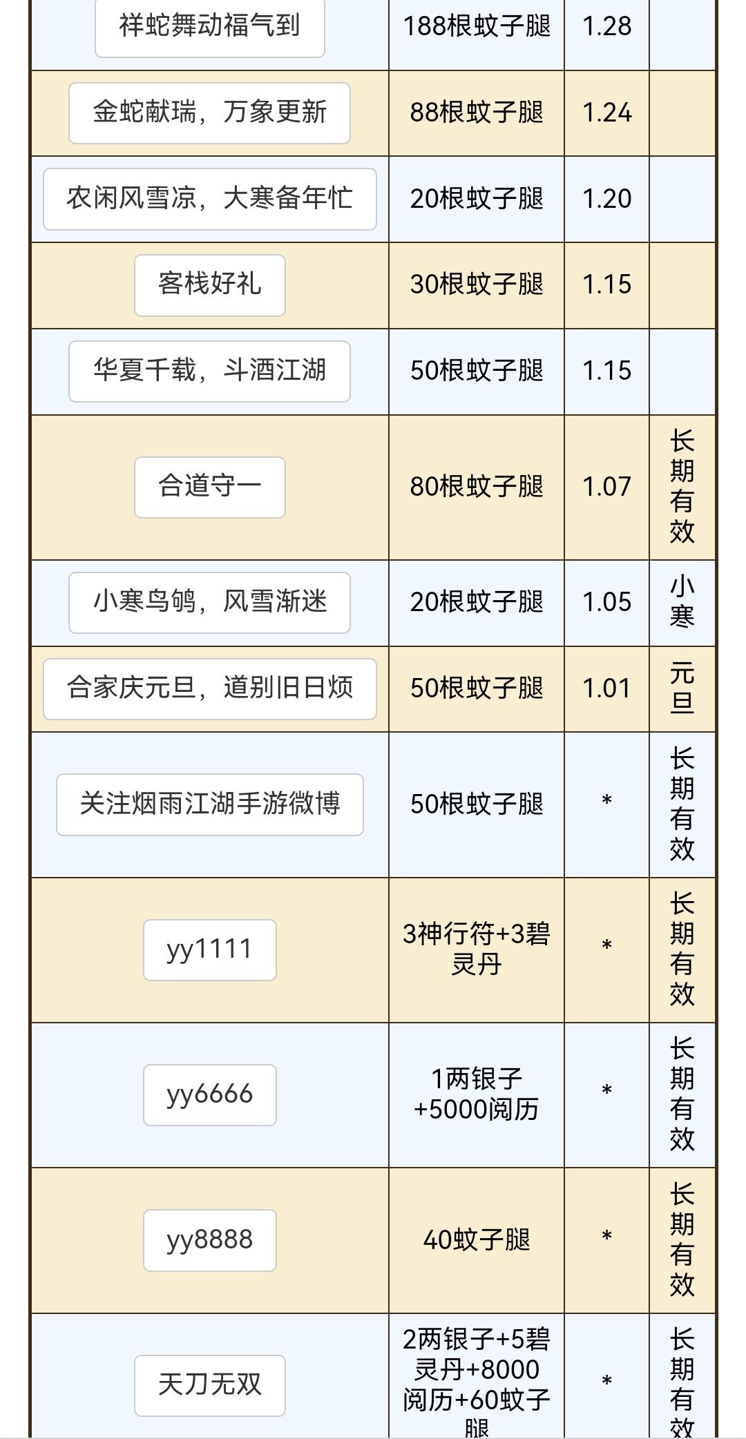 近期兑换码