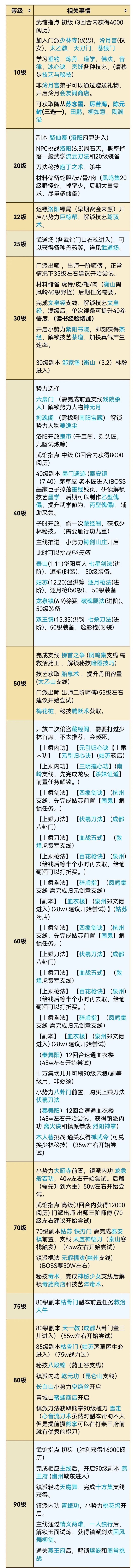 我的邀请码AAFYFG,以下是萌新40级前可以做的事: 副本及NPC仅显示副本等级,非等级限制;故推荐战力并不具有确定性,等级指的是主角等级;随从可超过主角两级。 10级: 武馆指点 初级 (3回合内获得4000阅历) 加入门派少林寺(仅男),泠月宫(仅女),太乙教,天刀门,苍狼门 学习垂钓,炼丹,道学,佛法,音律,冰心诀,烹饪各种技艺。(请移步技艺与秘技) 非泠月宫弟子可以通过赠送礼