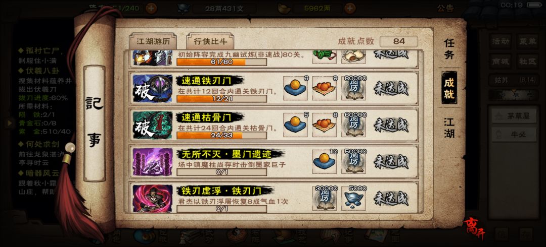 萌新不踩坑集锦(开局请注意这些坑) 1.开图受伤后在南阳老中医那治疗要比其他城市的便宜!前期能省不少医药费! 2.南阳客栈帮柳如意找到药王经上册后别自己学,不然再招柳如意就要多搭不少钱…… 3.开局轻功随从可以全部学习梅花步法,4免伤,主角先入门派免费获得轻功,然后学健行步和轻纵术再稍微升几层可以迅速到达20轻功,就可以轻松解锁学习进阶轻功,然后去幽州武馆跳梅花十关,获得大量阅历。接着学雁行功拿文
