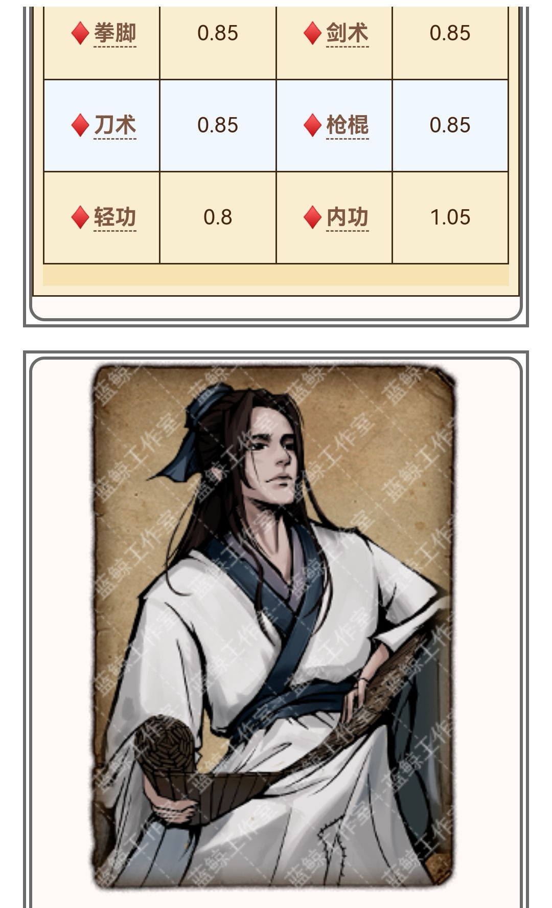 一句,除开氪金肉坦的不二肉坦 颜值真不差,算是一个有鬼气的笨帅哥 天赋需求是真多,又要好材料 又要高等级 有些任务点还不能出错,一开始招的时候要做的事也是真的多,这些东西实际上就是他不氪金也有主流能力的原理支撑,一般不会吊到哪里去但事多存在里面导致血厚。 输出本身并不高,但没有南没有僧没有尘你用这家伙绝对没有错。 再说一下前期的铁砂掌,好用是好用但只限过渡,过一段时间就没用了,还不能传功,没有必要