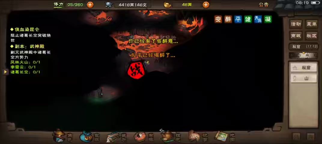 这个副本比碧游教简单太多了!从机制难度上比太监副本还要简单! 主角配置小星云极乐内,没有就天刀。随从最好有鸡刀和秀春刀。(有这俩随意嘎嘎乱杀)别的武学就选单体爆发高的。一个血牛肉盾,实在免伤不行的就堆血高防御高。阵型都用血衣楼掉那个阵型。211站位。中路血牛,我的主站上一号位。下路单独的那个输出需要吸血。主角烧香,全体吃防御药。 第一个:快速清理掉杂兵,3回合内,然后就是盯着老怪砍,杂兵清理后的回